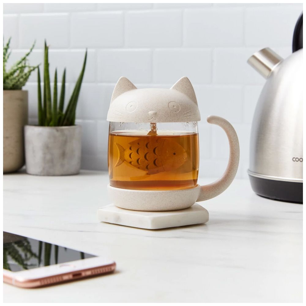 Witzig-originelles Accessoire also für Katzenliebhaber und Teefreunde (-innen) und alle anderen, die schon lange verstanden haben, dass man auf keinen Fall zu viel Katzen-Produkte zu Hause haben kann, auch wenn sie in diesem Fall nicht für die Katz', sondern das zweibeinige Personal gedacht sind. Was Madame Samtpfote gerade und dieses eine Mal noch durchgehen lässt. Schließlich mag sie keinen Tee. Aber über eine Extraportion Fisch kann man sicher reden.
